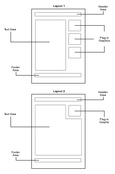 The header and footer areas can contain any of the Text Area formatting options described above. If left blank, the other areas of the page will expand to fill in the gap. Plug-in Graphics